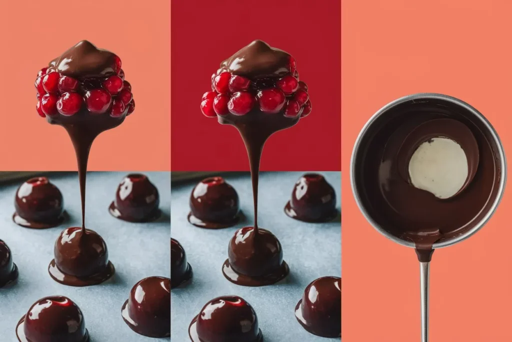 Chocolate dipped fruit and preserves are long standing European holiday traditions. This modern twist using cranberry sauce blends festive American flavors with classic chocolate confectionery techniques. It brings together the warmth of winter celebrations with the improvisation of using leftovers creatively.