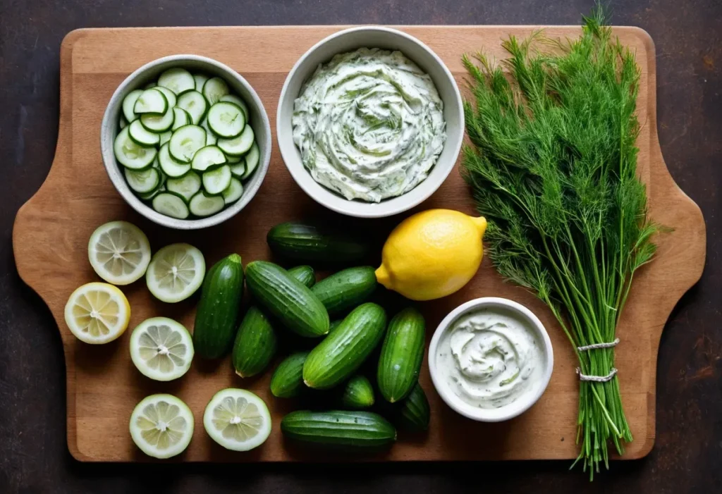 Creating Dilly Cucumber Bites requires just a handful of fresh ingredients, many of which you may already have on hand. The key is choosing firm cucumbers and fresh dill to maximize flavor. Here’s what you’ll need: