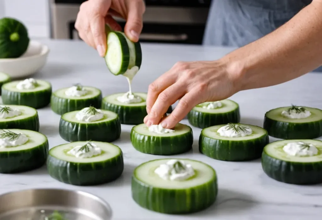 Even if you’re new to the kitchen, making Dilly Cucumber Bites couldn’t be easier. With just a few simple steps, you’ll assemble a flavorful and attractive appetizer that’s sure to impress. This step-by-step guide will walk you through the process so you can enjoy these fresh bites in no time.