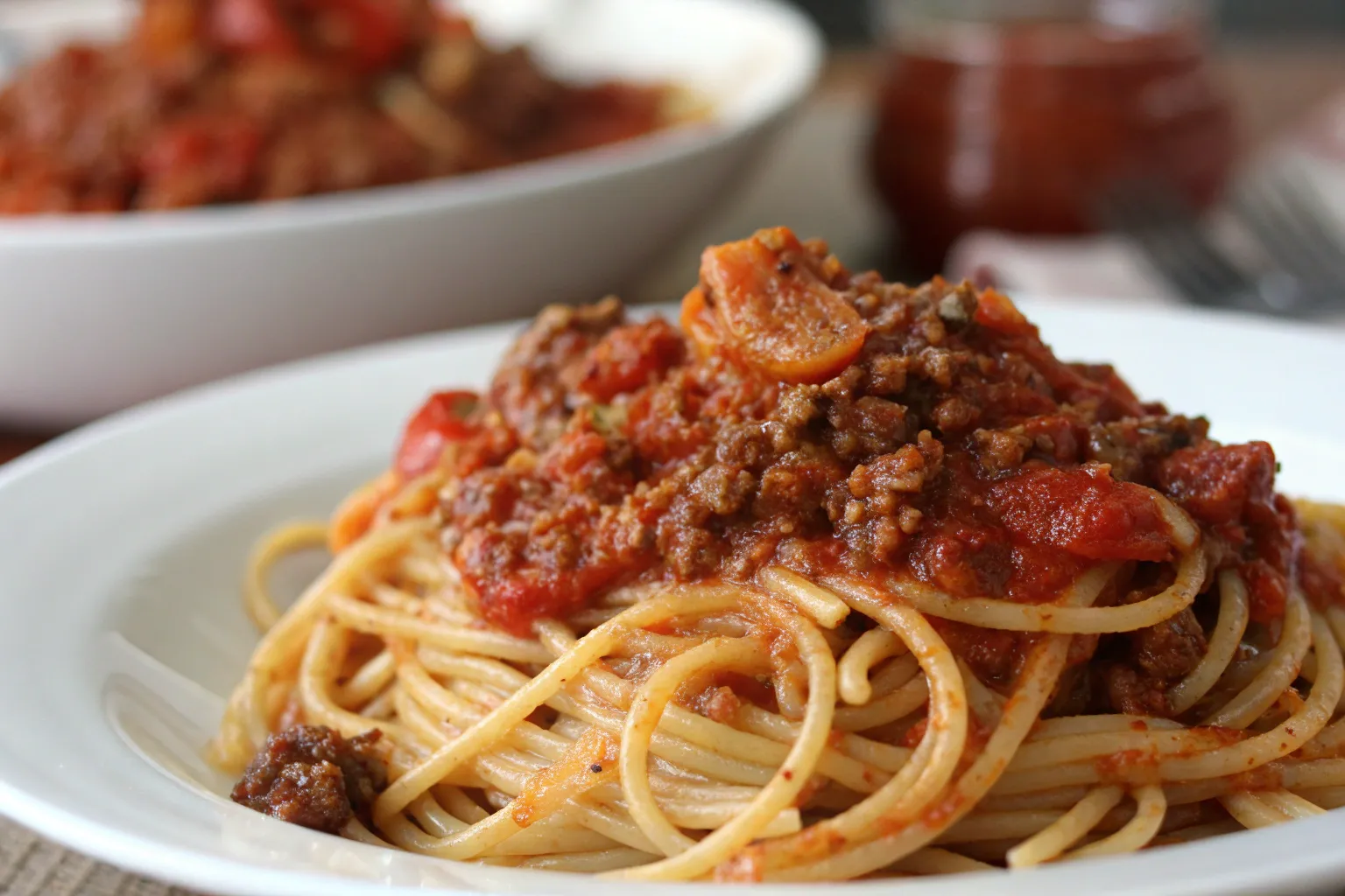 - Pair spaghetti bolognese with garlic bread and a green salad.