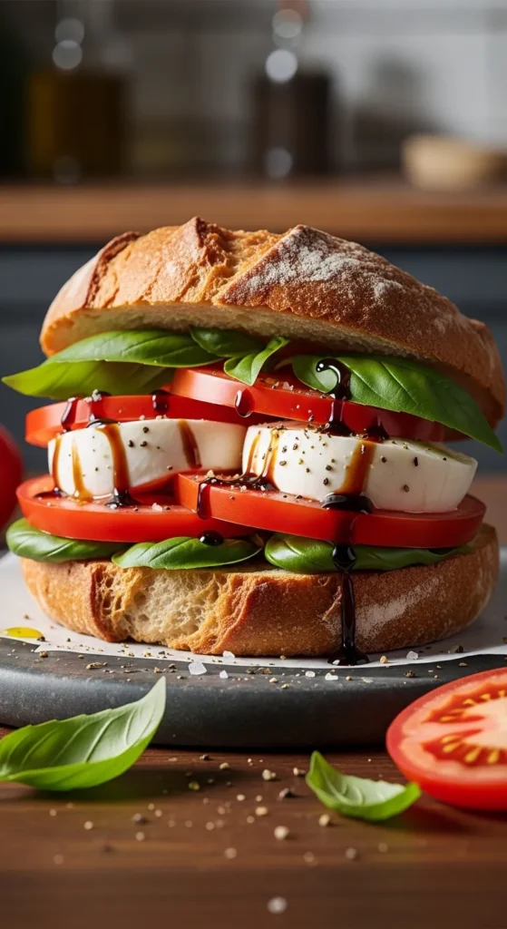 There you have it—a simple, delicious, and almost embarrassingly easy Caprese sandwich. Fresh ingredients, minimal effort, maximum flavor. Now go impress someone or yourself with your new sandwich wizardry. You’ve earned every bite. And if anyone asks, just smile mysteriously and say, “It’s a secret family recipe.”