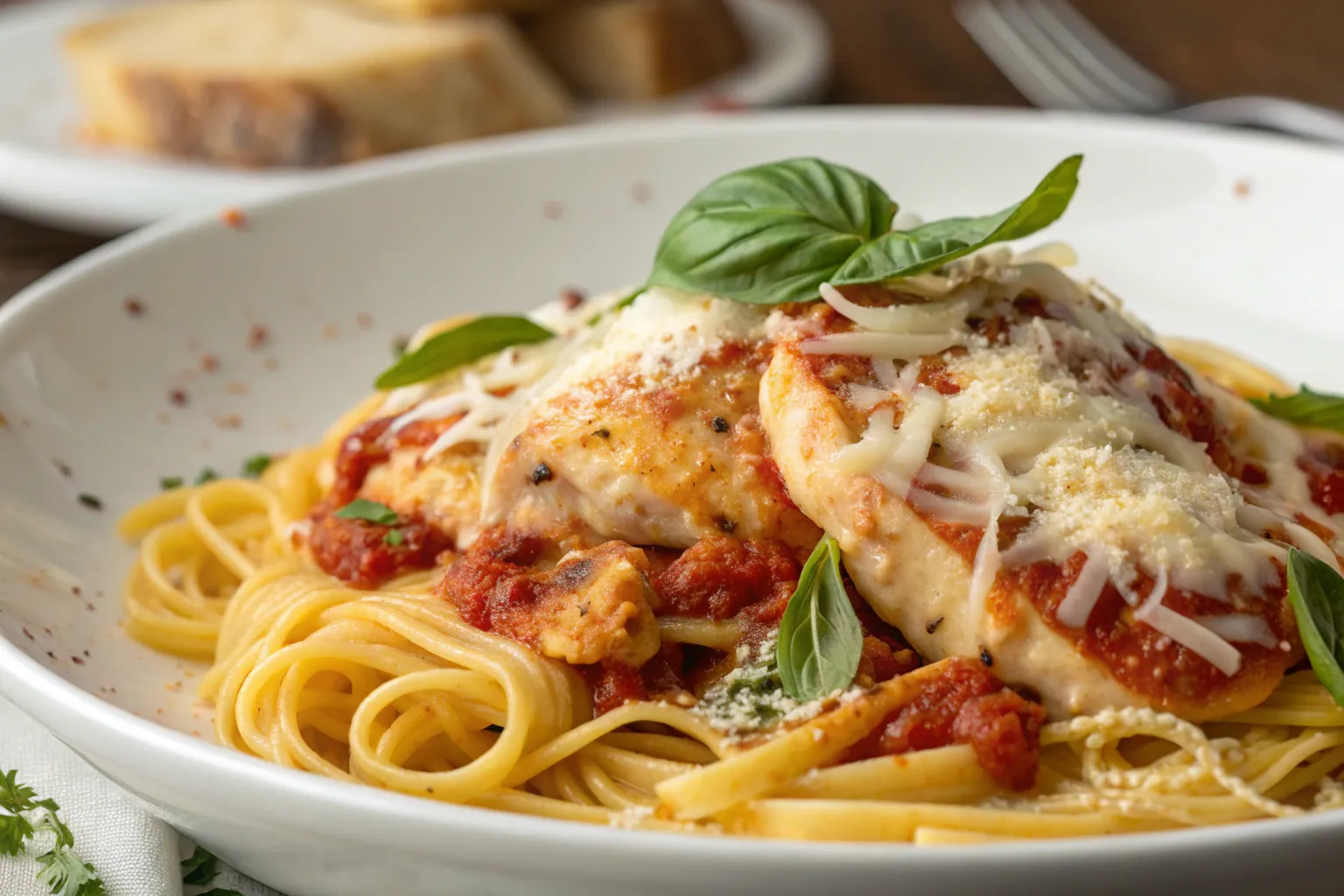 Keeping dinner simple is key, and this recipe uses pantry staples you probably already have on hand. From chicken and pasta to marinara and mozzarella, each ingredient is easy to find yet combines into a dish that tastes extraordinary.