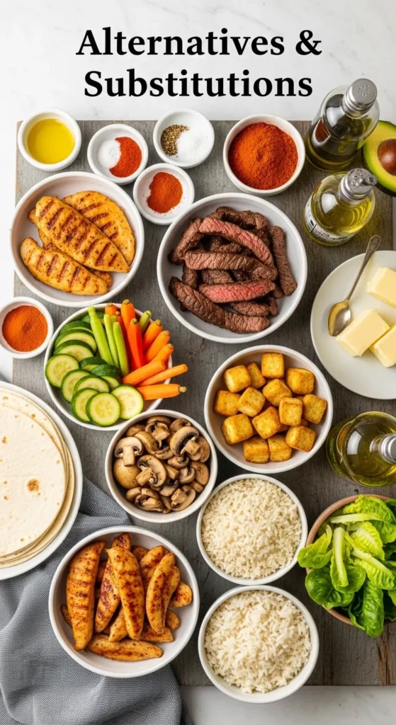 - Tortilla swap: Rice, quinoa, or lettuce wraps if you’re avoiding carbs.