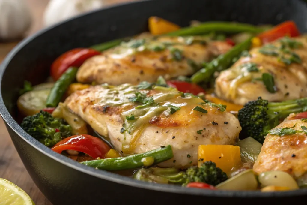 One-pan garlic butter chicken and veggies is a simple yet flavorful meal perfect for busy weeknights. Juicy chicken thighs are roasted with garlic, butter, and a mix of seasonal vegetables like carrots, broccoli, and bell peppers. Everything cooks together in one pan, minimizing cleanup while maximizing taste. It’s a wholesome, balanced meal that the whole family will enjoy.