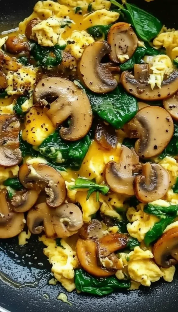 Easy Mushroom Spinach Scrambled Eggs