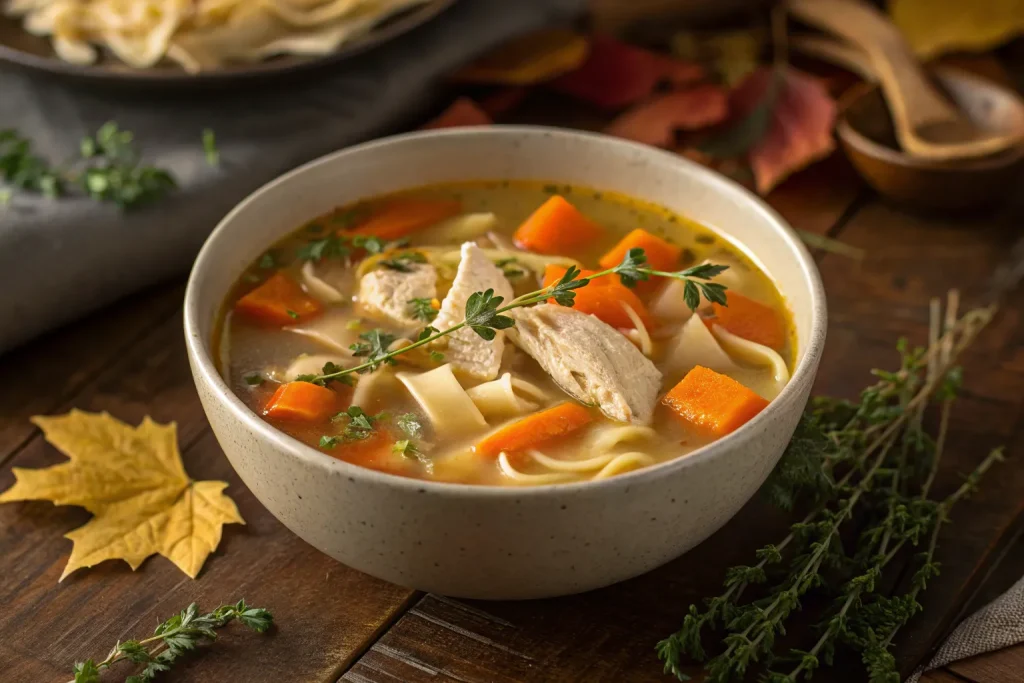 Fall Chicken Noodle Soup with Thyme & Carrots