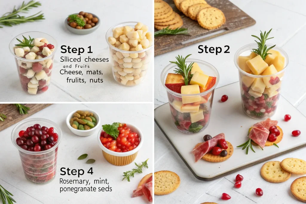 Assembling these cups is quick and requires no cooking, making them ideal for holiday hosts. By layering ingredients thoughtfully, you can create individual servings that are colorful, tasty, and festive. The step-by-step process ensures everyone gets a perfectly balanced cup every time.
