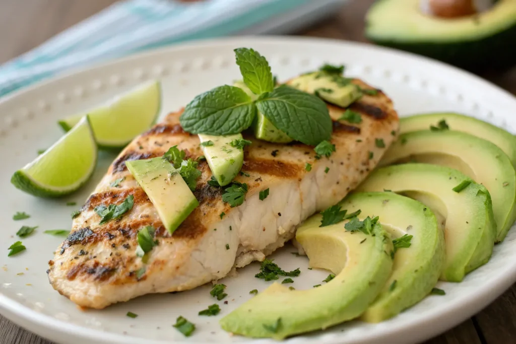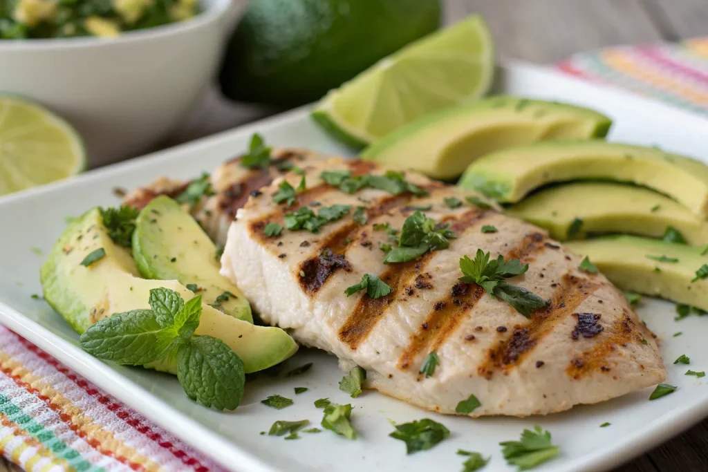 The flavor of this dish relies on simple, fresh ingredients. Lime juice, olive oil, garlic, and spices combine to create a bright, zesty marinade that enhances the chicken’s natural taste. Topped with creamy avocado and fresh herbs, the ingredients work together for a balanced, flavorful meal.