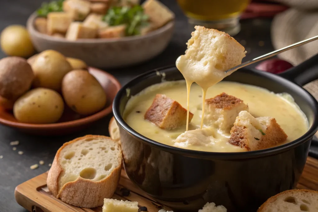 There’s nothing quite as cozy, communal, and indulgent as Fondue Savoyarde. Originating in the French Alps, this traditional cheese fondue combines the rich, nutty flavors of alpine cheeses with white wine, garlic, and a touch of kirsch. Served with crusty bread cubes, seasonal vegetables, and sometimes charcuterie, Fondue Savoyarde is more than just a meal, it’s a culinary ritual that brings friends and family together around a bubbling pot of molten cheese. Whether you’re hosting a winter gathering, celebrating a special occasion, or simply craving a taste of French alpine tradition, Fondue Savoyarde offers warmth, comfort, and unbeatable flavor.