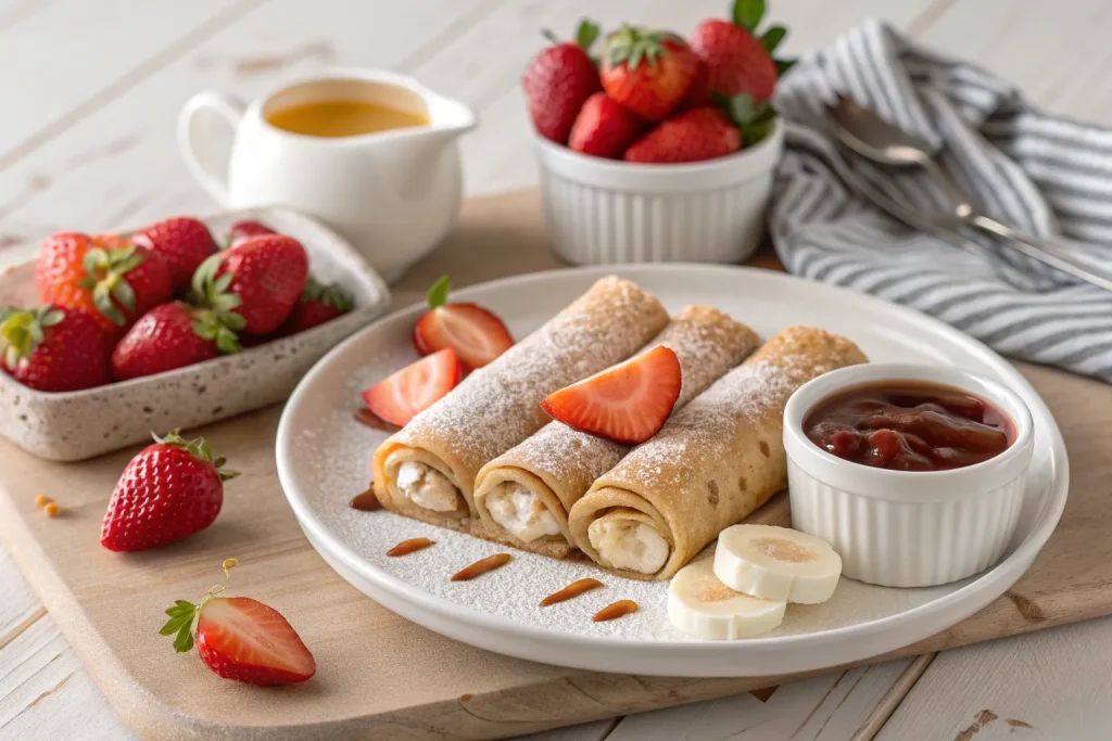 Maple syrup, chocolate sauce, or yogurt dips complement the rollups perfectly.