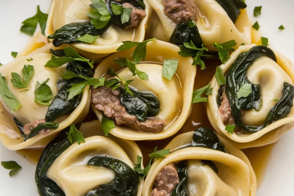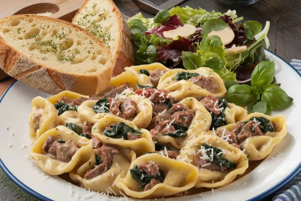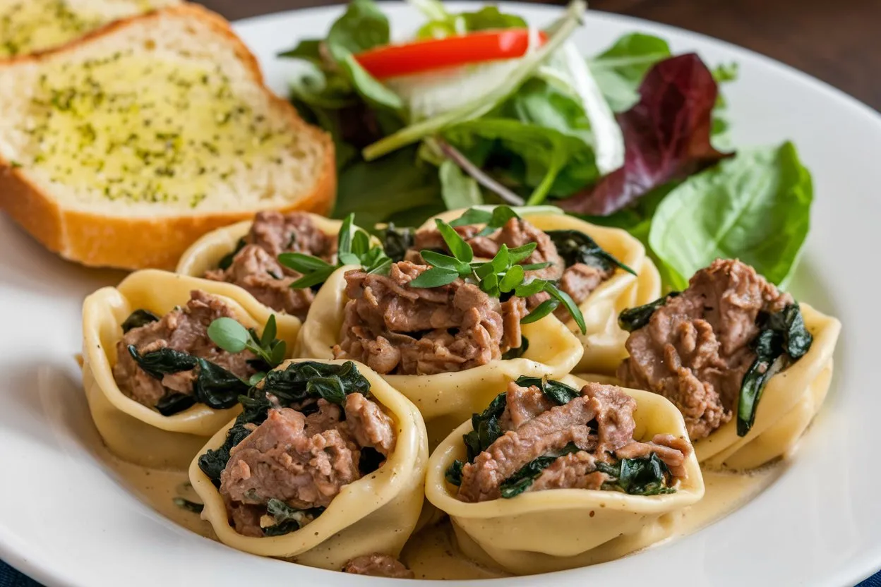 Making this recipe is as simple as boil, brown, and toss. Cook the tortellini, brown the beef, melt the butter with garlic, add spinach, then toss everything together. In less time than it takes to wait for takeout delivery, you’ll have a hot and satisfying dinner ready to enjoy.