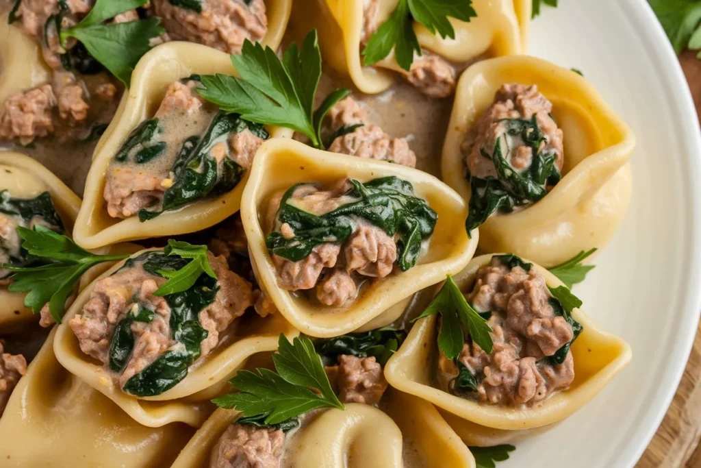 Garlic Butter Beef Spinach Tortellini is the ultimate comfort food dinner that’s ready in under 30 minutes. Tender cheese tortellini is tossed with savory ground beef, wilted spinach, and a luscious garlic butter sauce for a meal that’s both hearty and full of flavor. Perfect for busy weeknights when you want something quick but restaurant-worthy.