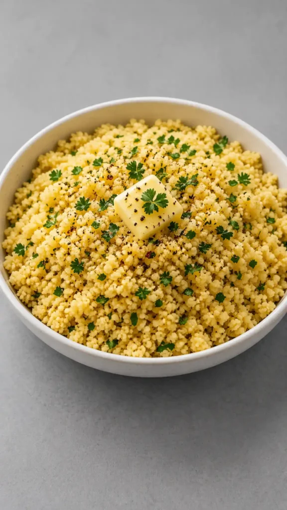 After 5 minutes, grab a fork and fluff the couscous. Don’t mash it like potatoes — be gentle. You want light and airy, not clumpy. - Finish strong