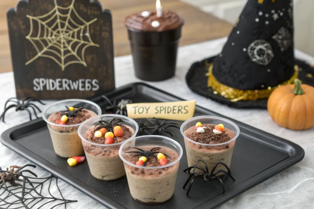 Serve these pudding cups on a black tray with faux spiderwebs, toy spiders, or mini LED candles for ultimate spooky effect. Add name tags for a themed party or personalize gravestones with humorous inscriptions. These cups also pair well with other Halloween treats like witch hat cones, pumpkin patch brownies, or monster rice krispies.
