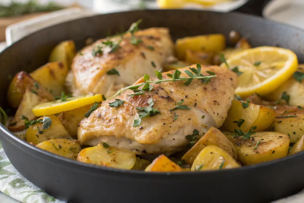 This recipe is inspired by traditional Greek taverna dishes, where lemon, olive oil, and herbs are the heart of cooking. Known as Kotopoulo me Patates, this oven-baked meal celebrates simple ingredients transformed through bright, rustic flavors. It’s a taste of the Mediterranean coast, wholesome, fresh, and full of sunshine.