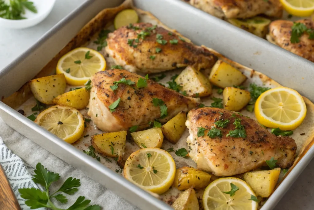 It’s an easy, one-pan oven-baked dish that feels elegant enough for entertaining but simple enough for weeknights. The balance of tangy lemon, aromatic herbs, and savory chicken is pure comfort — Greek style.