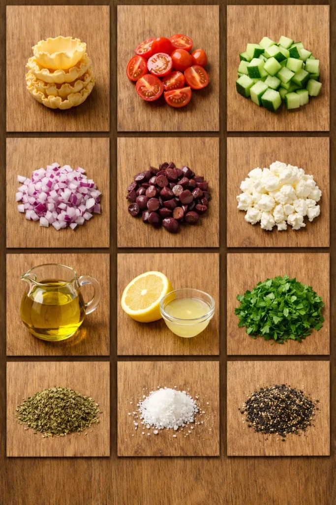 12–15 mini phyllo shells or wonton cups – The crunchy little “bowls” that hold everything together.