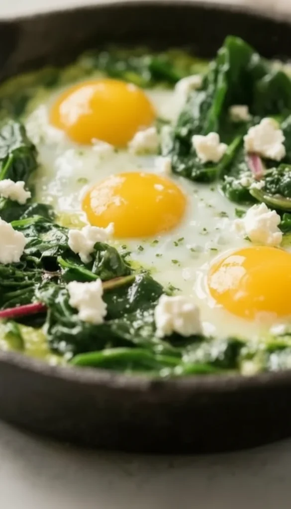 Green shakshuka with spinach, chard, and feta is fresh, hearty, and easy to make in one pan. It brings bright herbs, tender greens, and perfectly cooked eggs to the table in about half an hour. Pair it with good bread, and you’ve got a feel-good meal any time of day. Simple ingredients, big payoff.