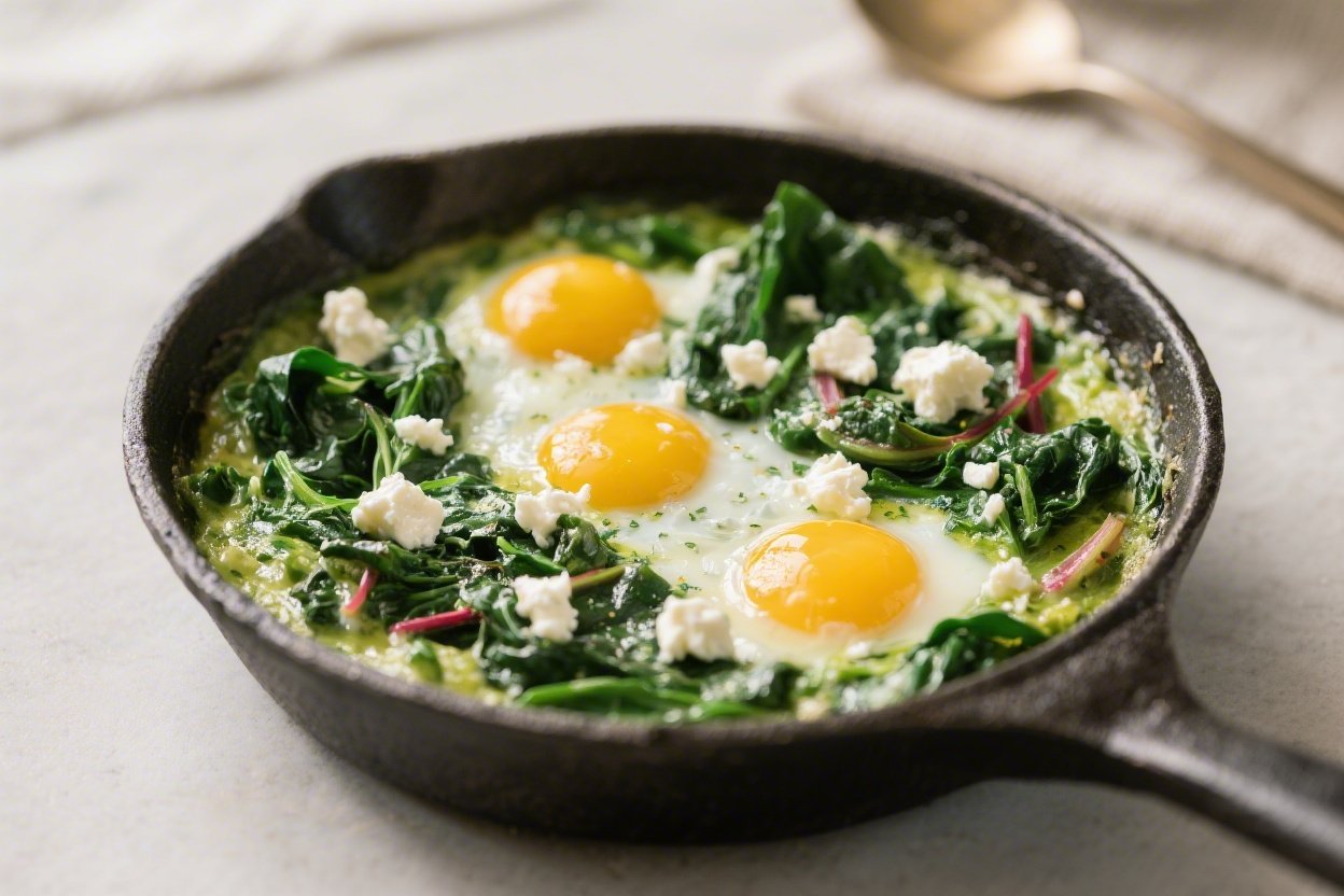 Green Shakshuka With Spinach, Chard & Feta - A Fresh, Herby Skillet Breakfast