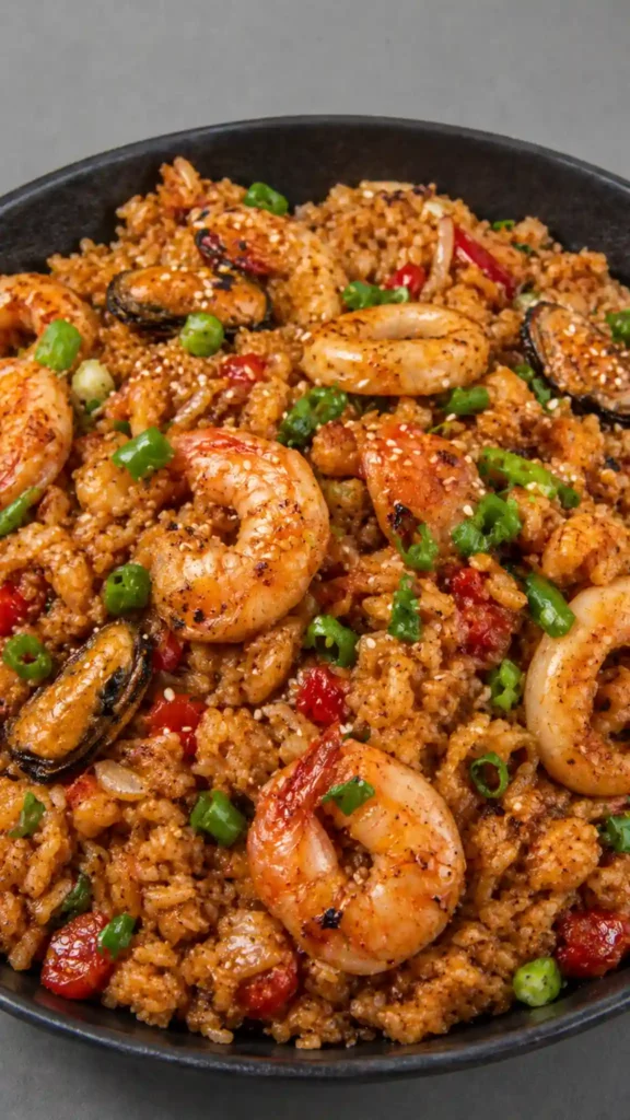 No gochujang? Use chili paste or even sriracha. It won’t be authentic, but it’ll still work. No seafood? Fine. Use chicken, beef, or even just eggs. It’s fried rice, not a strict exam. Vegetarian? Skip the seafood and go heavy on mushrooms.