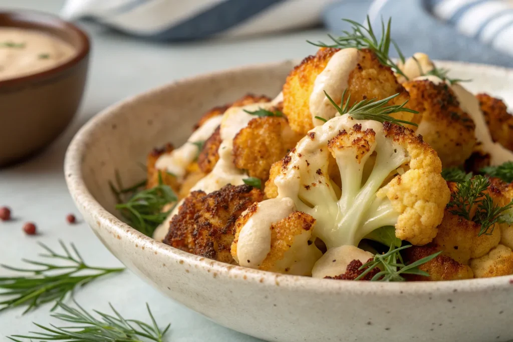 - Serve: Drizzle tahini dill sauce over roasted cauliflower and garnish with additional dill or toasted sesame seeds.