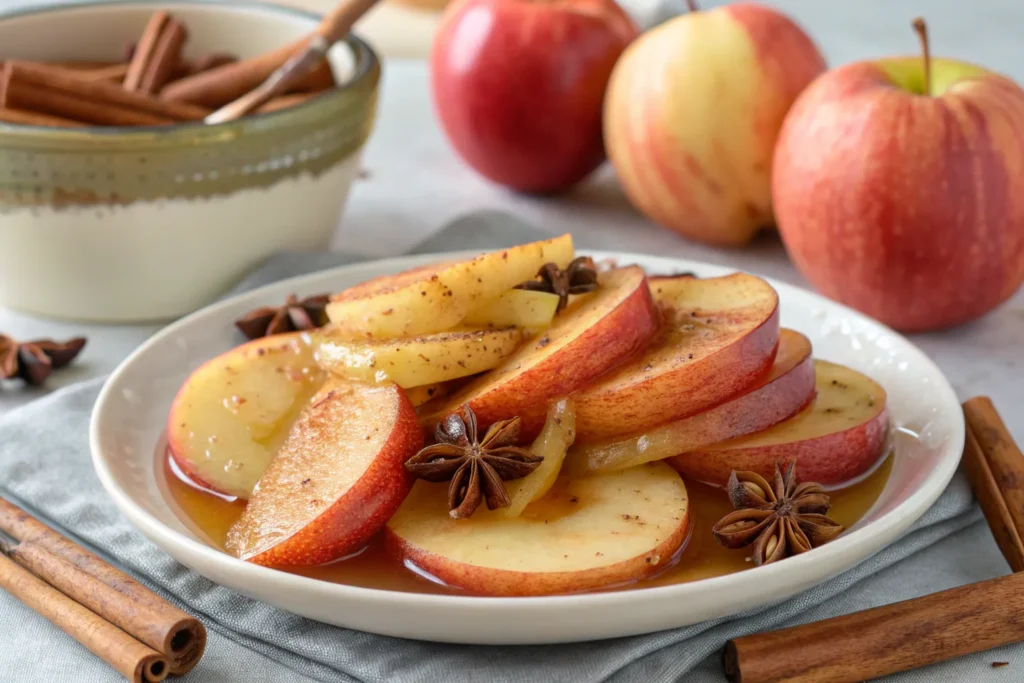 - Add a touch of liquid: A splash of water or apple juice in the pan prevents sticking and helps the apples soften without burning.
