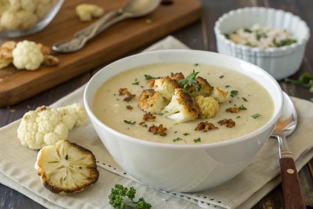 The key to a perfect Mediterranean cauliflower soup is roasting the cauliflower before blending. It enhances flavor, adds natural sweetness, and gives the soup a rich, nutty taste.