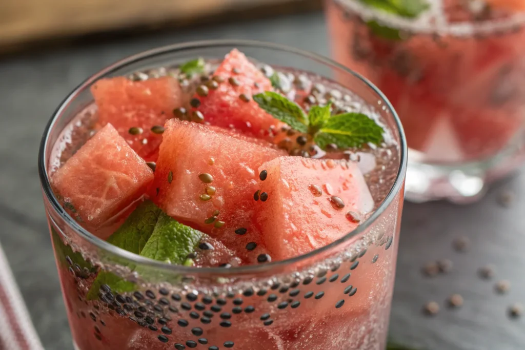 Puree watermelon, mix with chia seeds, lime juice, and sparkling water. This drink hydrates, adds fiber, and looks stunning in a glass.