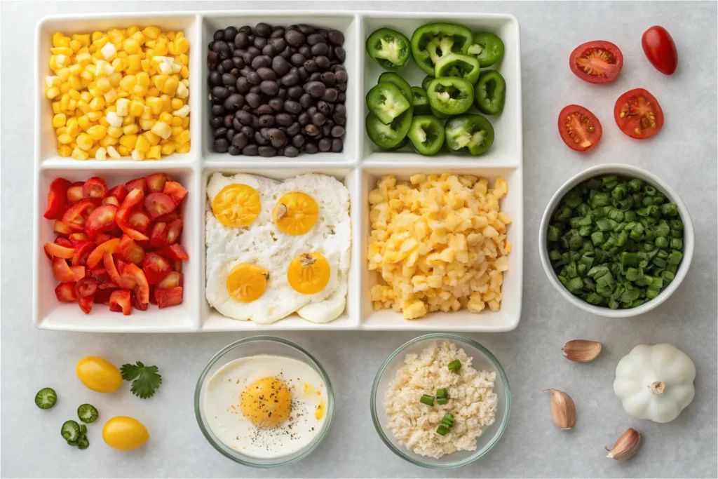 In the same or a separate skillet, sauté onion, bell peppers, and garlic for 3–4 minutes until softened. Add corn and black beans, stir to combine, and season with a pinch of cumin, smoked paprika, or chili powder for Southwest flavor.