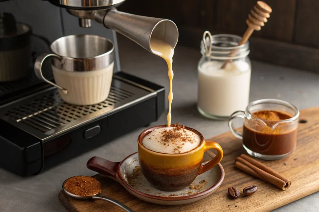 - Pour the espresso into a mug and top with the honey-infused milk.
