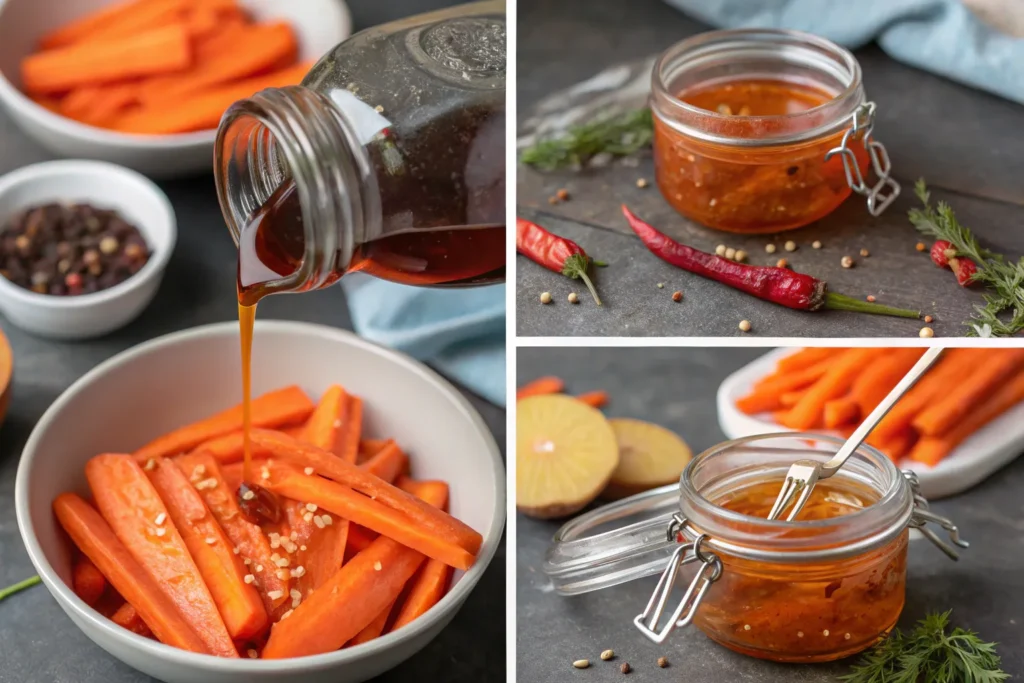 Pickling has been a staple preservation method across cultures for centuries, from Korean kimchi to Eastern European dill pickles. The Hot Honey Pickled Carrots take inspiration from Southern American cuisine, blending the trend of hot honey (a favorite for fried chicken and pizza) with traditional vegetable pickling for a bold, modern twist.