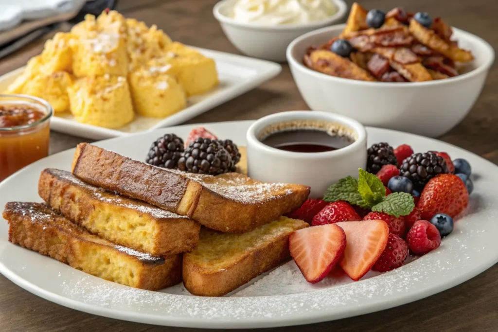 Serve the French toast sticks with maple syrup, chocolate sauce, fresh berries, or a dusting of powdered sugar. They pair wonderfully with scrambled eggs, bacon, or a fresh fruit salad for a complete breakfast.