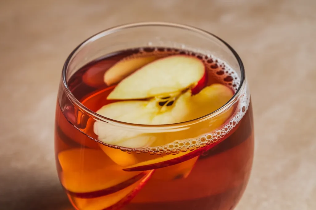 They’re similar, but Korean apple tea usually has a lighter, cleaner apple flavor and is often sweetened with honey or syrup rather than strong spices. Cinnamon may be added, but it’s typically subtle.