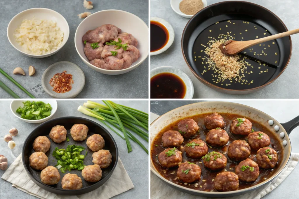 Do not overcrowd the skillet when browning the meatballs—proper browning adds essential depth to the final flavor. If using gochujang, start with a small amount and adjust to your spice preference. Fresh ginger makes the biggest difference in flavor compared to dried.