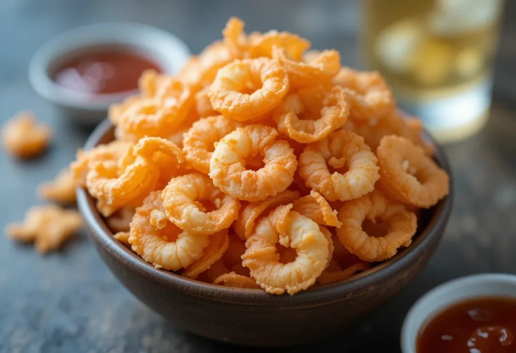 Shrimp chips are a crunchy, airy snack with a subtle but distinctive seafood flavor derived from real shrimp powder mixed into the batter. These light, puffy chips are perfect for those who enjoy savory snacks with a touch of umami. They are usually slightly salty and make an excellent companion to beer or soft drinks, making them popular at social gatherings or casual snacking.