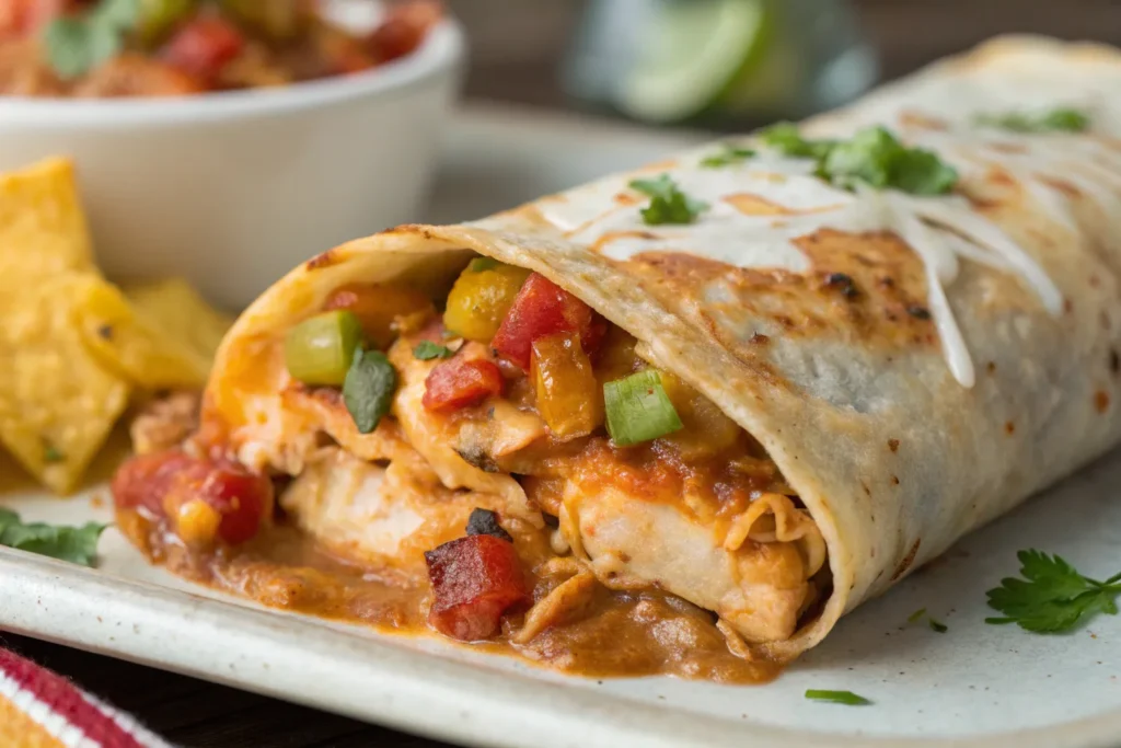 Chicken enchiladas are a comforting and crowd-pleasing dinner. Roll shredded chicken mixed with cheese inside tortillas, arrange them in a baking dish, and pour enchilada sauce over the top. Bake until bubbly and golden for a hearty meal. Garnish with fresh cilantro, sliced olives, or diced onions to add an extra layer of flavor and freshness.