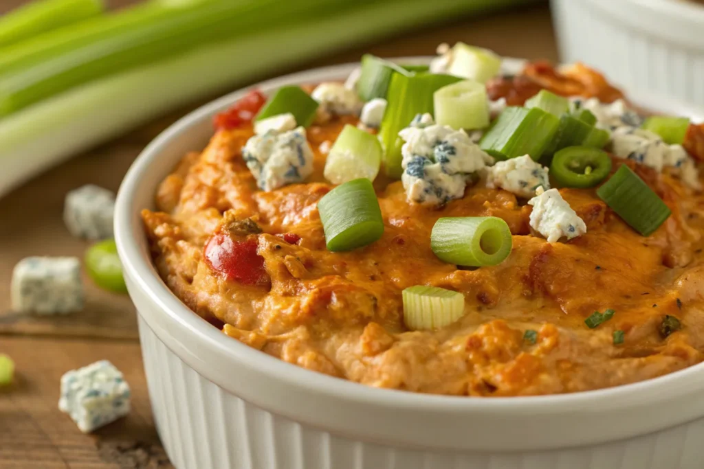 Buffalo chicken dip is a creamy, spicy, and irresistible appetizer or snack. Mix shredded chicken with cream cheese, hot sauce, and shredded cheese, then bake until bubbly and golden. Serve with tortilla chips, crackers, or celery sticks for dipping. This dip is perfect for parties, gatherings, or whenever you want a bold, flavorful treat.