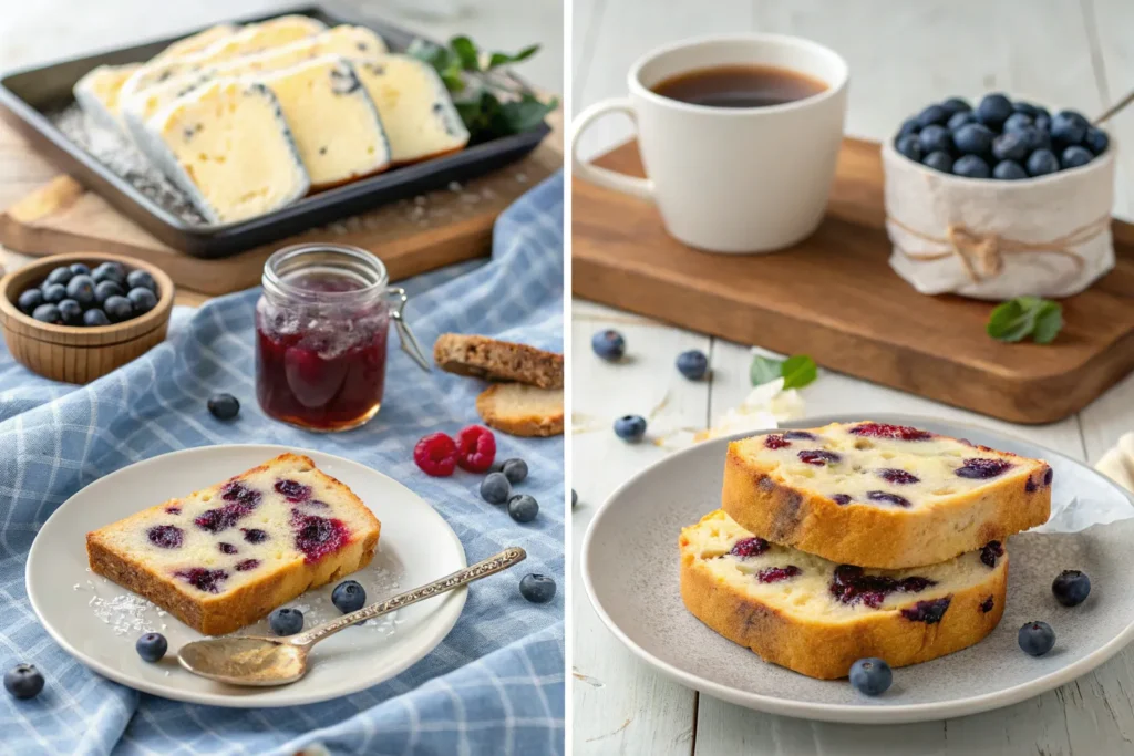 Lemon Blueberry Loaf can be stored at room temperature in an airtight container for 2–3 days. For longer storage, refrigerate for up to a week. Slice and serve chilled or slightly warmed. This loaf also freezes well for up to 2 months. Wrap tightly in plastic wrap and aluminum foil, then thaw in the refrigerator before slicing. You can also freeze individual slices for convenient grab-and-go treats.