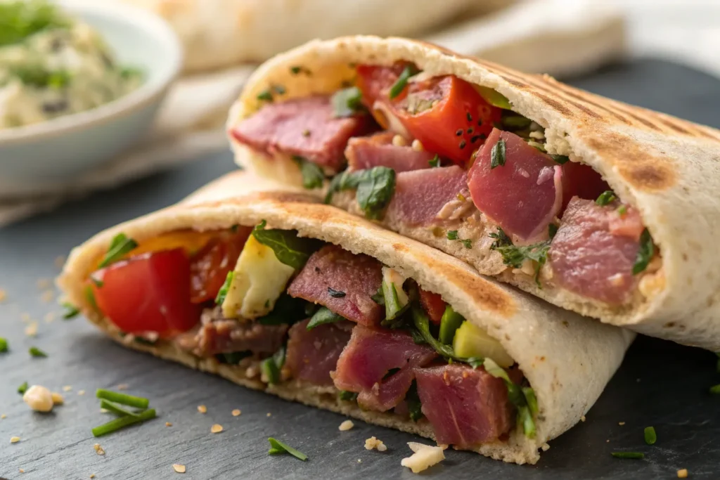 Tuna mixed with Greek yogurt, lemon, cucumber, and herbs tucked into whole-wheat pita bread. Light, protein-packed, and ideal for on-the-go summer nights.
