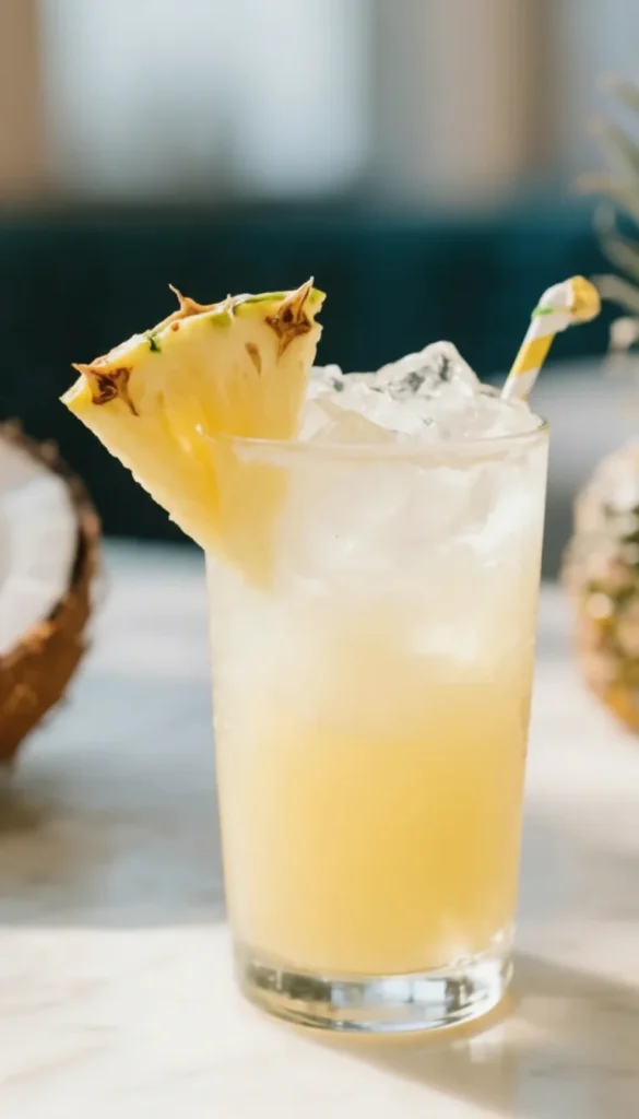 • Garnish: Lime wheel, pineapple wedge, or a few toasted coconut flakes