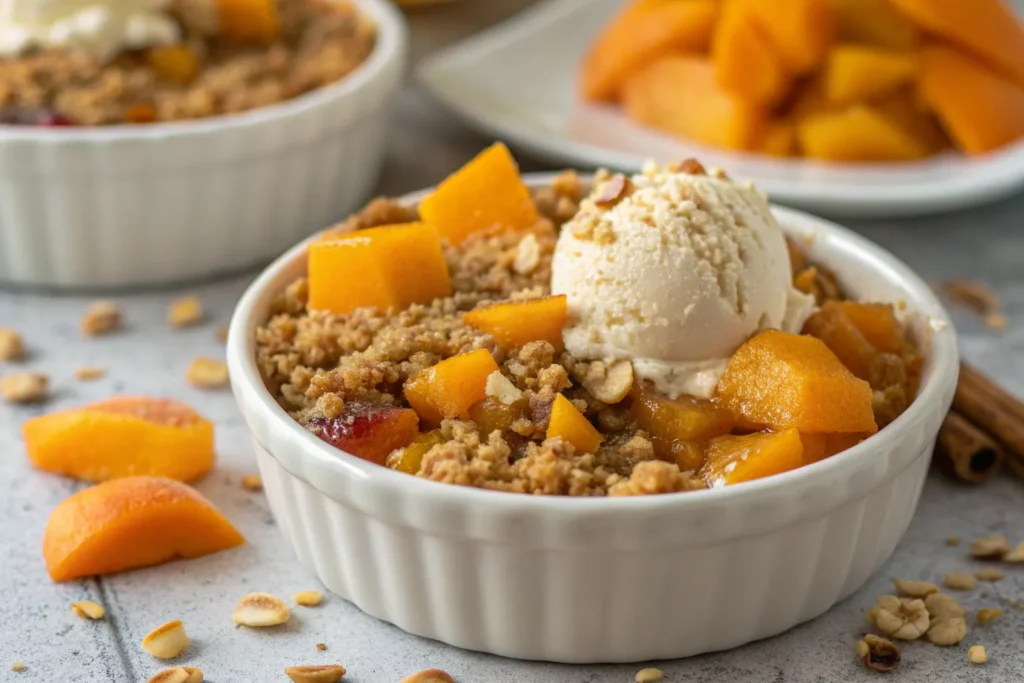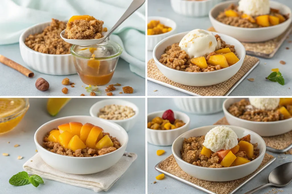 Remove from the oven and let the crumble rest for 10–15 minutes before serving. This allows the filling to set slightly and enhances the flavor.