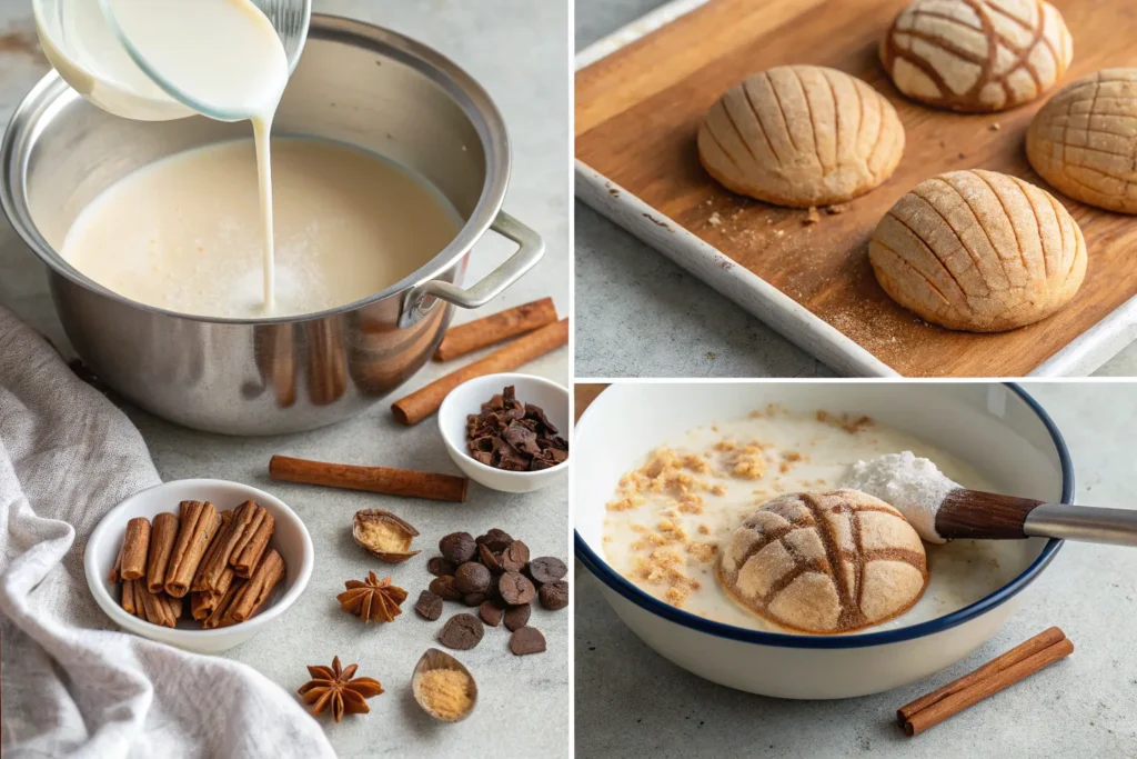 For a richer flavor, use a mix of milk and heavy cream, or add a pinch of nutmeg or cardamom for extra warmth. Some versions include a drizzle of chocolate or caramel sauce over the conchas. For a lighter alternative, plant-based milks like almond or oat milk can be used, and sugar can be reduced or replaced with natural sweeteners such as maple syrup.