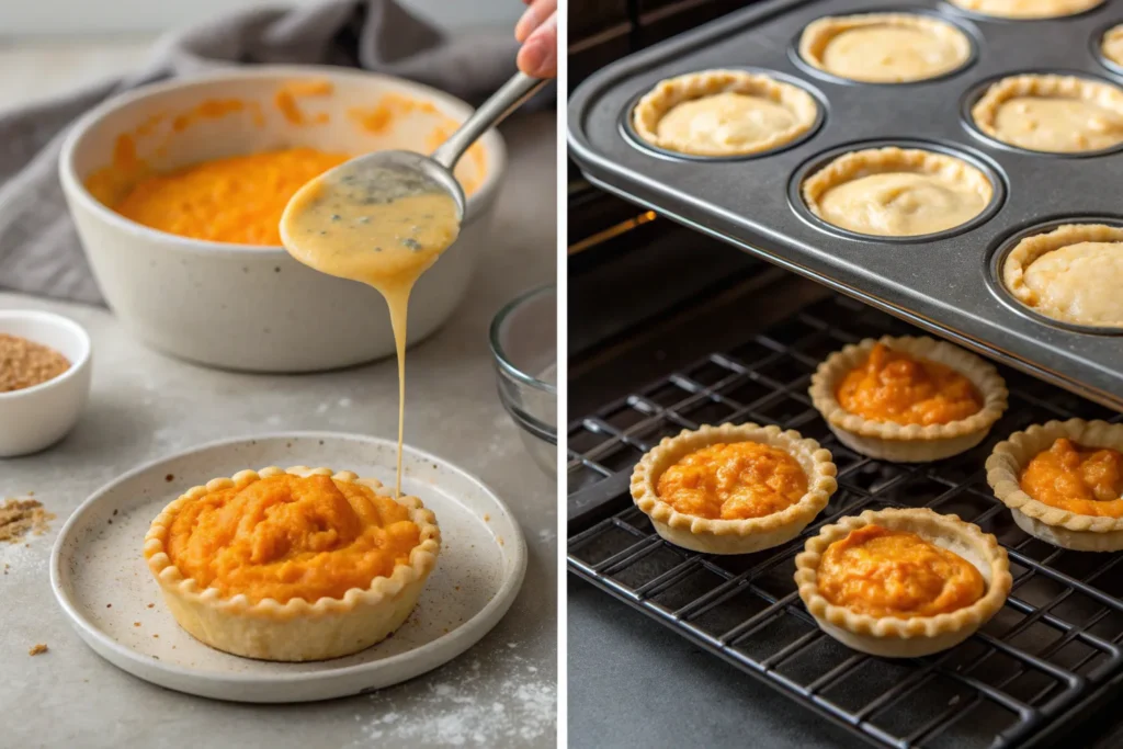 The process is simple, even for beginner bakers. First, prepare a smooth, spiced filling from mashed sweet potatoes. Then spoon it into mini crusts, bake until set, and let them cool slightly. The result? Beautiful little pies that look bakery-made but taste homemade.