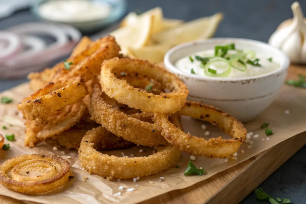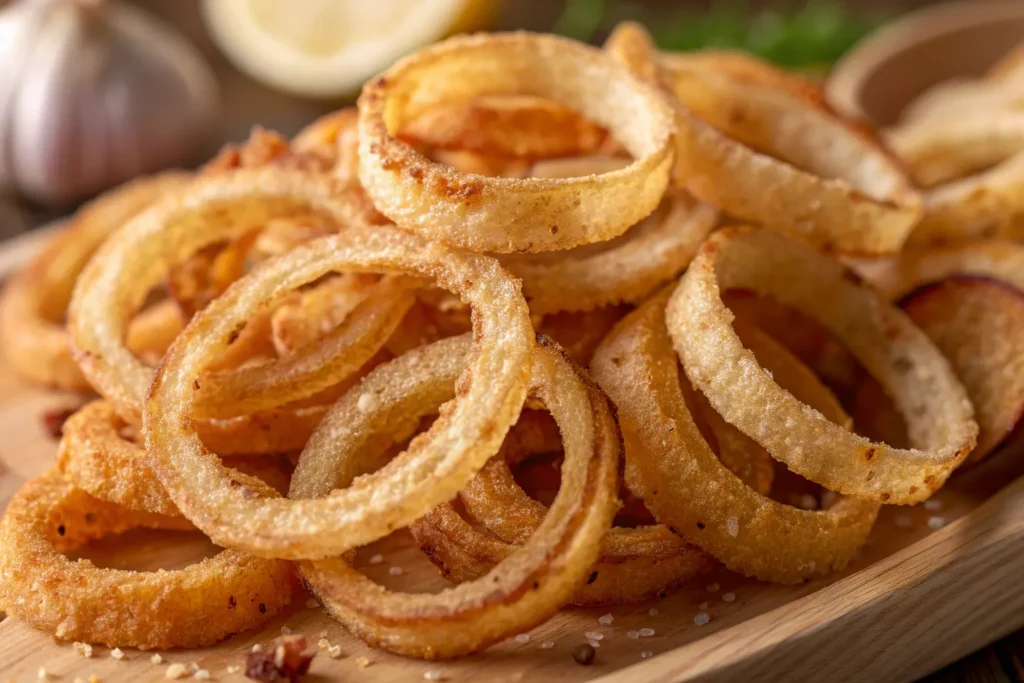 Yes! Air frying is a great alternative. Preheat the air fryer to 400°F (200°C), lightly spray the onion rings with oil, and cook for 10–12 minutes, flipping halfway for even crispiness.