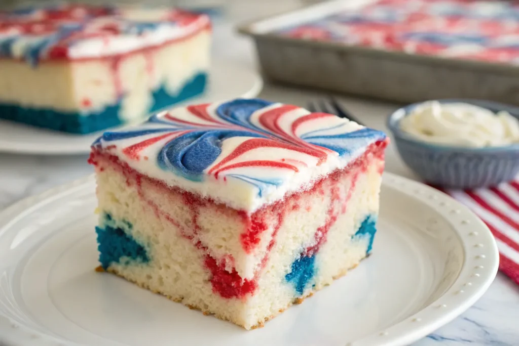Patriotic Poke Cake is more than just a dessert — it’s a showstopper that adds excitement and sweetness to any celebration. With its colorful layers, light texture, and easy preparation, it’s the perfect recipe to make when you want something festive without spending hours in the kitchen. So gather your ingredients, get baking, and watch your guests’ faces light up when you slice into this red, white, and blue beauty.