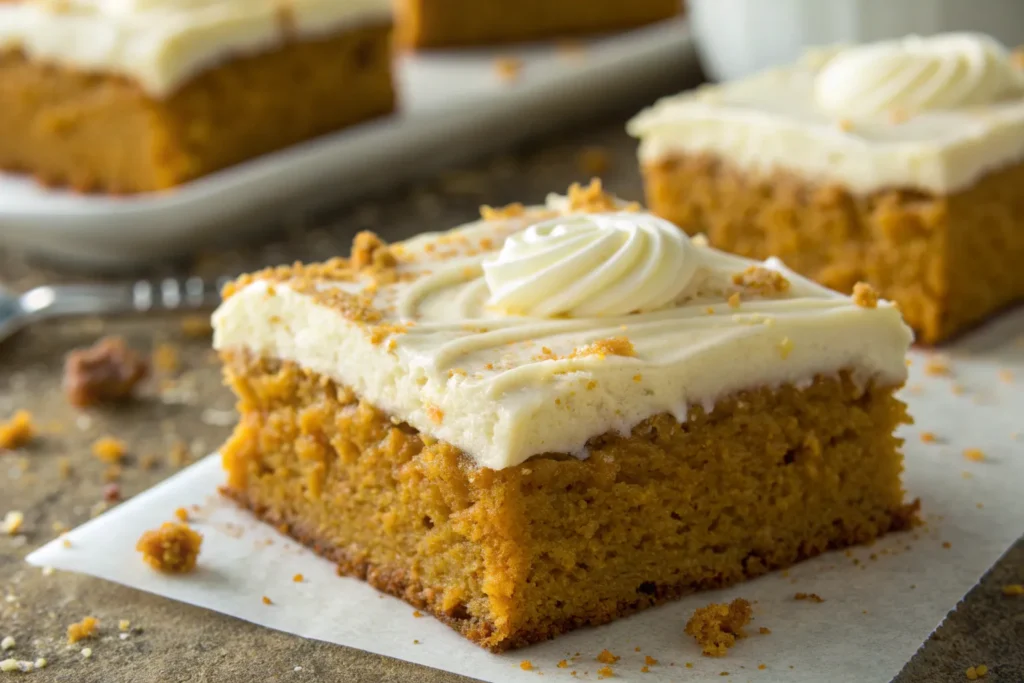 Great desserts don’t need to be complicated, and this recipe is proof of that. With a few common ingredients, you can create a dessert that feels indulgent and homemade at the same time. Pumpkin puree adds natural moisture and flavor, while a mix of warm spices infuses every bite with coziness. The frosting only needs four ingredients yet transforms the bars into a bakery-style treat. These simple elements come together to make one of the most satisfying fall desserts you’ll ever try.