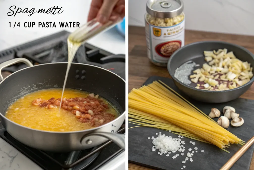 - Always reserve pasta water; it helps bind sauce to noodles.