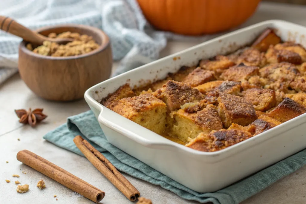 Each serving of this casserole provides cozy indulgence balanced with seasonal pumpkin goodness. Rich in flavor but lighter than traditional desserts, it’s a comforting way to enjoy pumpkin spice without overindulging.