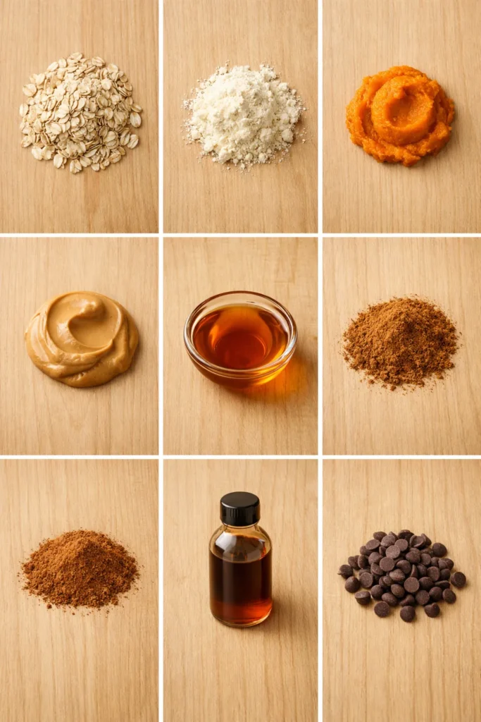 Mix them together first so the protein powder doesn’t clump later and ruin your mood. Dry ingredients deserve a moment to bond. - Add the pumpkin purée, nut butter, honey, and vanilla.