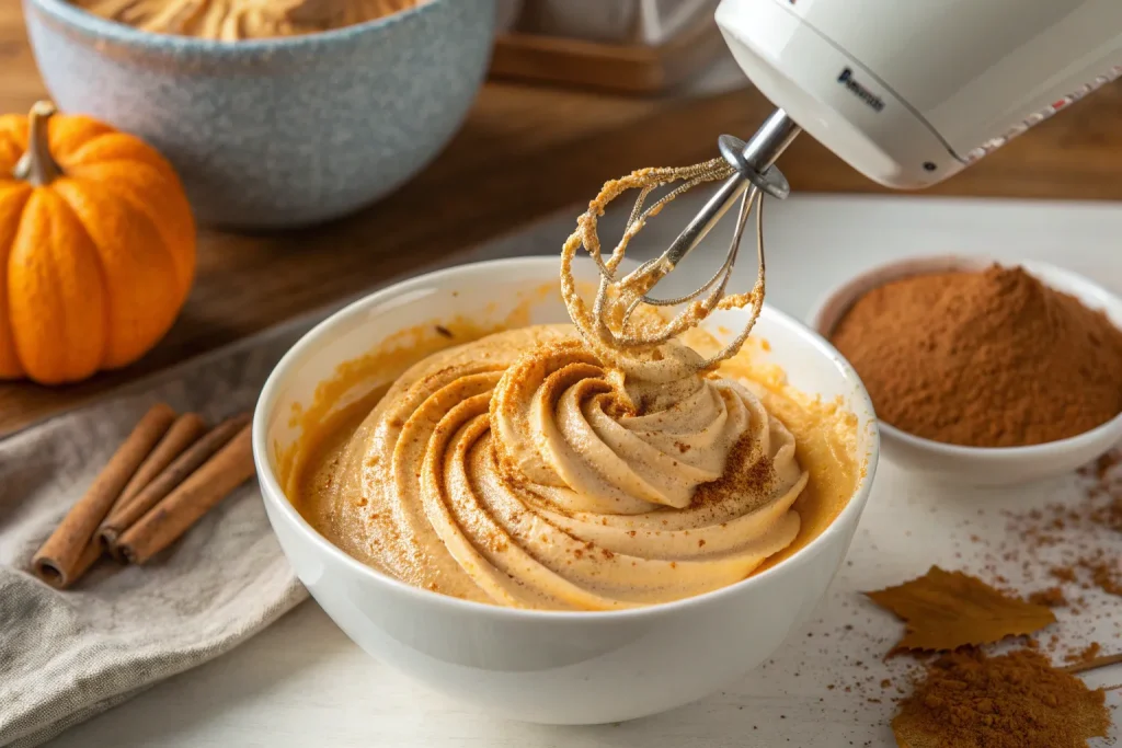 Before you start whipping, let’s go over what you’ll need. This recipe calls for heavy cream, pumpkin purée, powdered sugar, and a blend of warm spices like cinnamon and pumpkin pie spice, all pantry staples during the fall season.